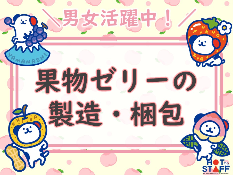 4月スタート☆働きやすさで選ぶくだものゼリー作り♪日勤or夜勤専属OK・土日祝休み・時給1,100円
