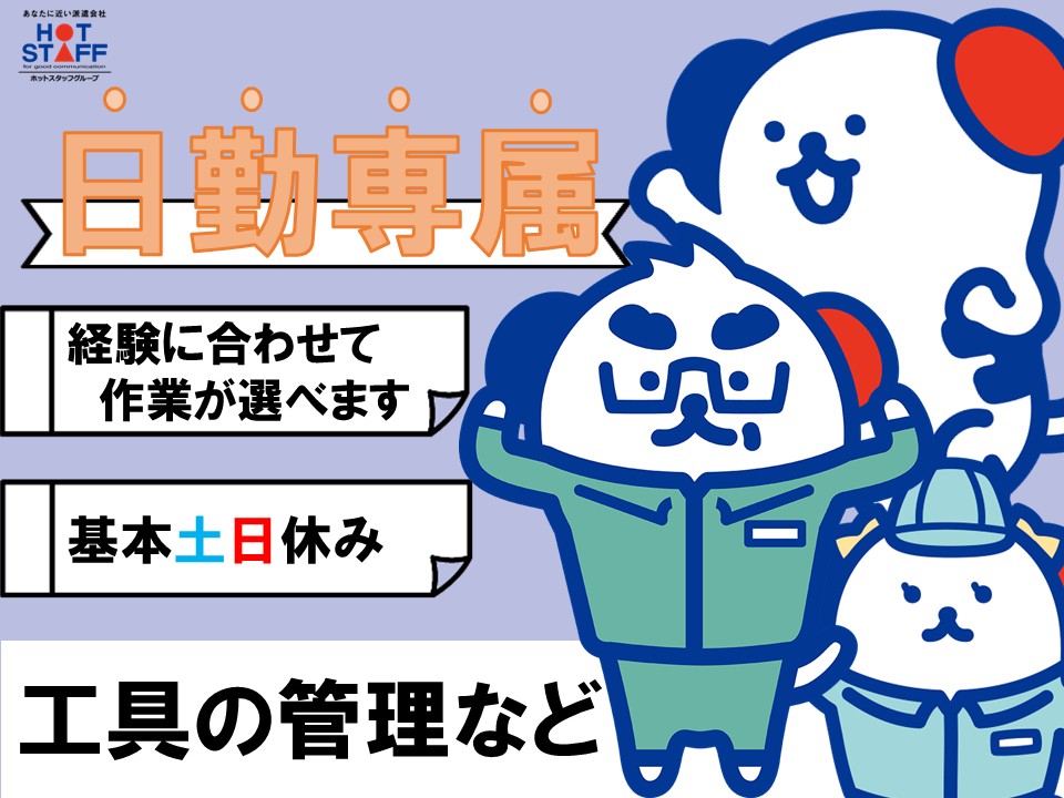 時給1170円&土日休み・日勤専属の工場ワーク・資格を活かす機械セット or 無資格OKの工具管理