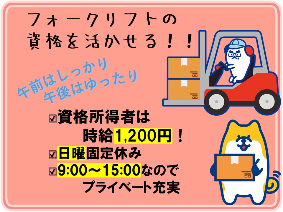 ※フォークリフトの資格を持っている場合時給1,200円