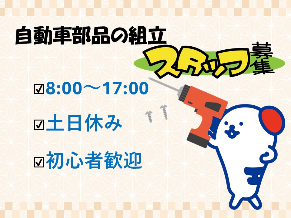 空調完備の快適ルームで車の重要パーツをコツコツ組み立て!土日休みでメリハリを付けて働けます♪