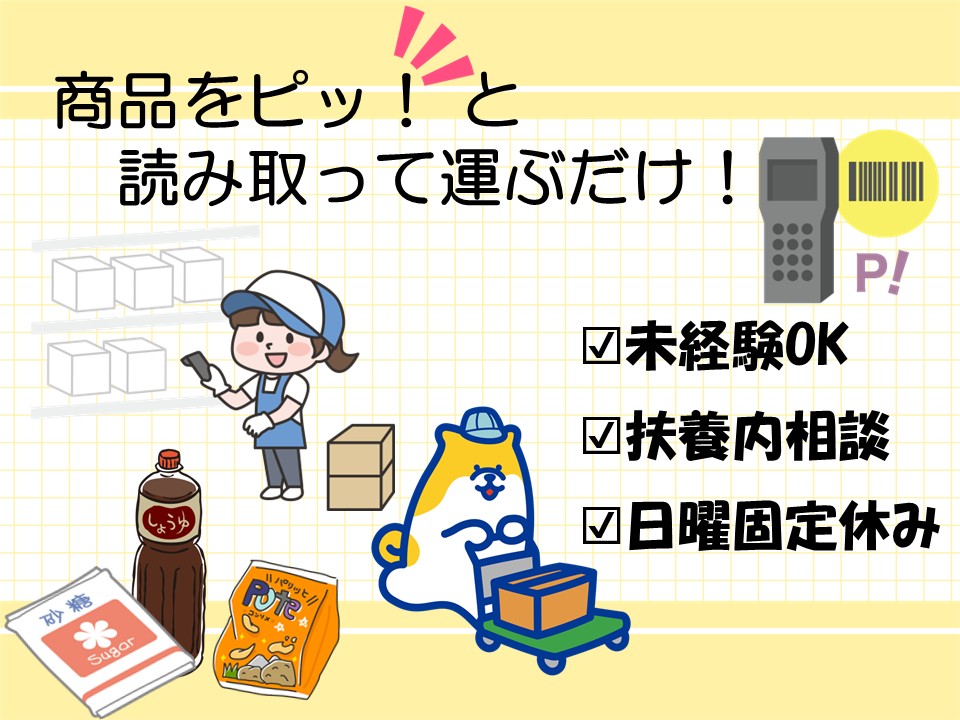 【扶養内OK】「ピッ」として「ポン」♪倉庫内でピッキングのお仕事!未経験OK!働きやすさ抜群!資格も活かせる!