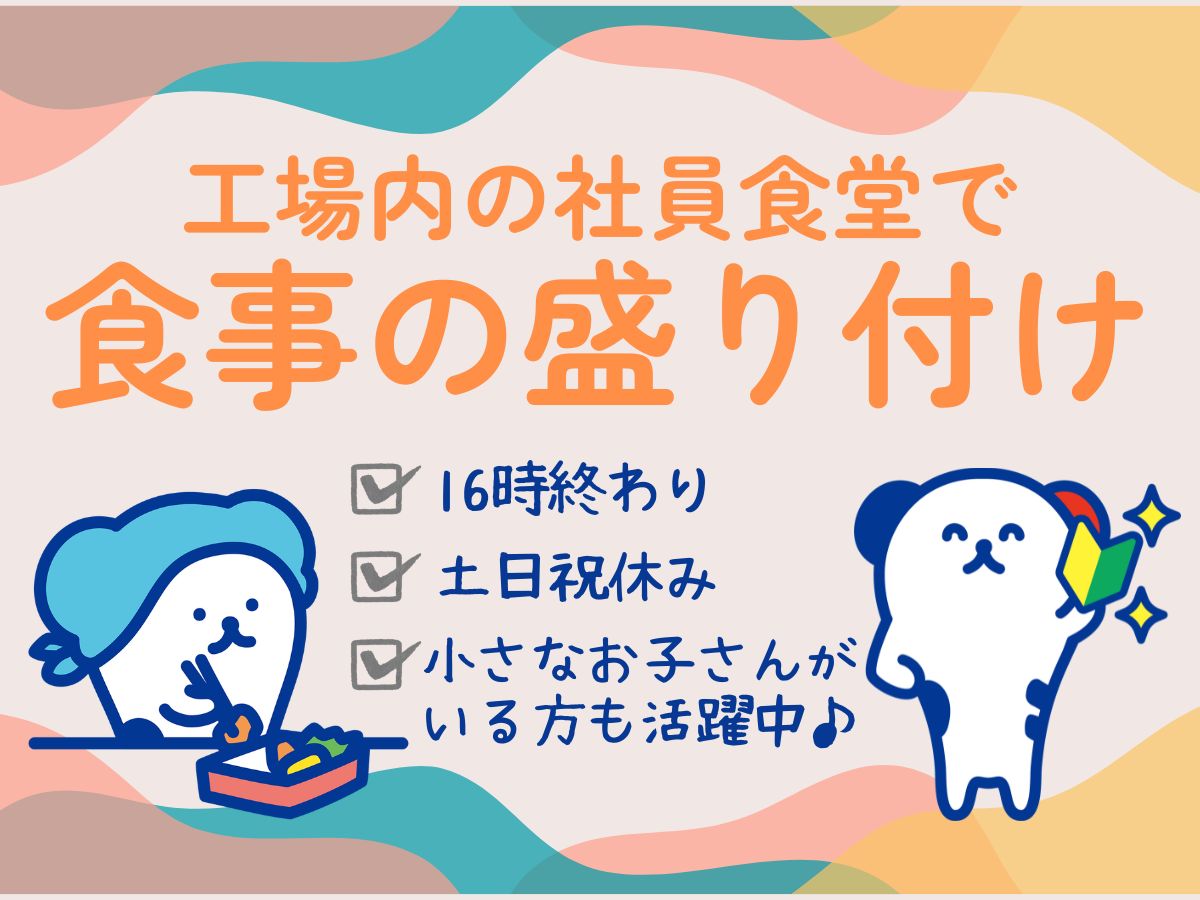 土日祝休み / 16:00終わり / 残業なし◎〈 工場内の食堂でおかずやご飯の盛り付け★調理なし! 〉