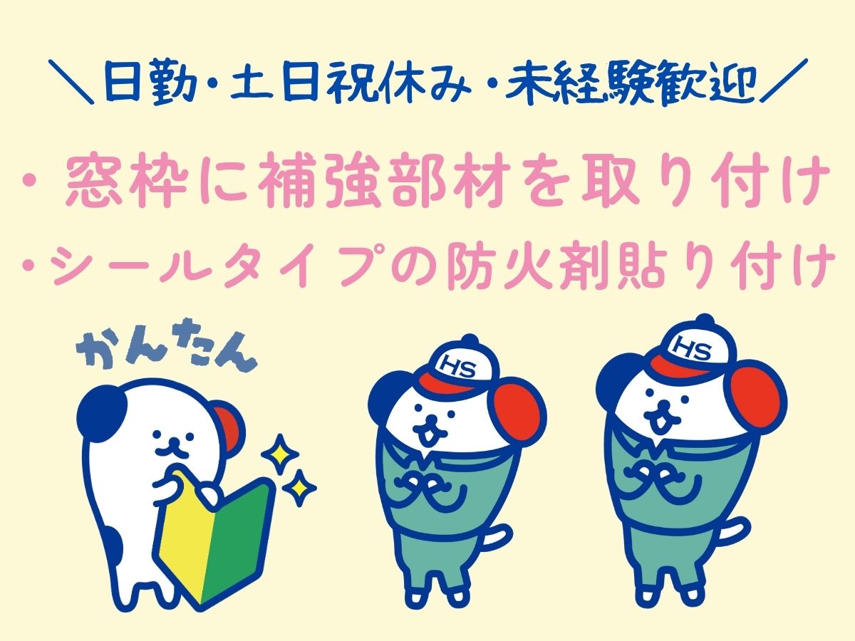土日祝休み / 未経験でもOK♪ 〈 窓枠に補強部品を取り付けたり・シールタイプの防火剤を貼り付け★ 〉
