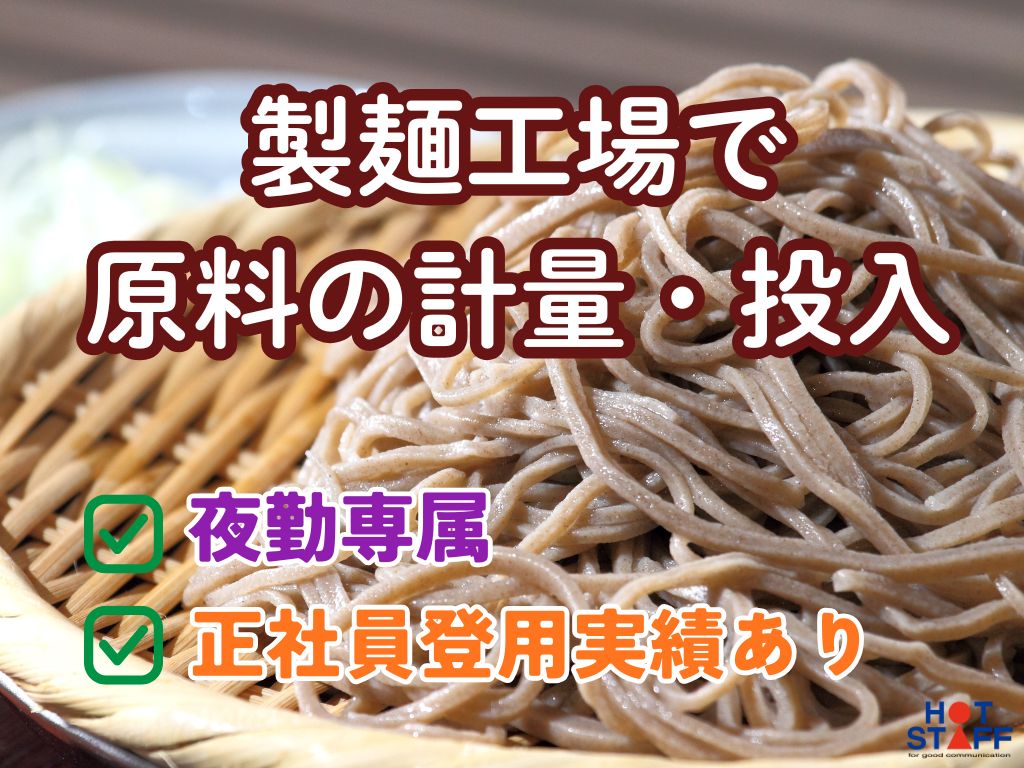 夜勤専属☆19:00~4:00【食品工場で原料の計量や投入スタッフ】駅チカ!未経験者歓迎♪