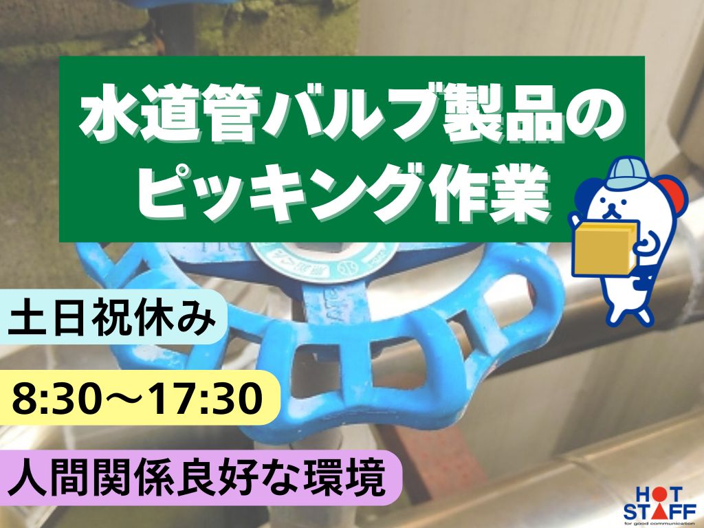 土日祝休み☆8:30~17:30【カンタン!バルブ製品の仕分け・ピッキング作業】未経験OK♪