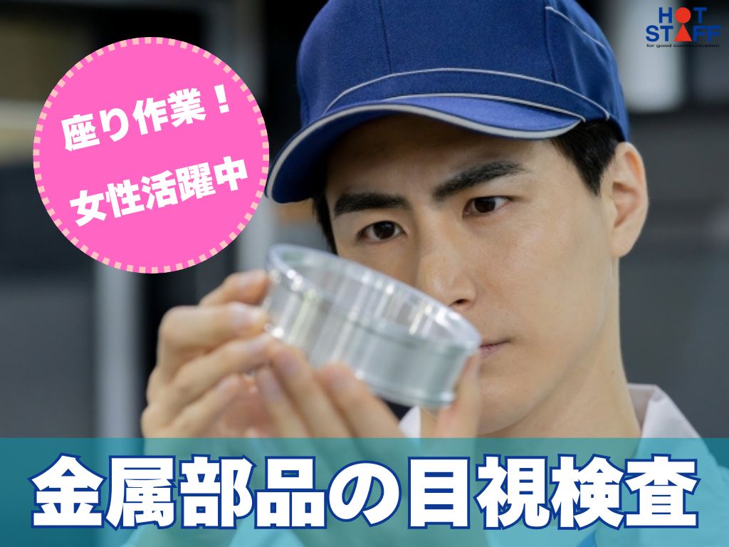 座り作業!年間休日124日☆【金属製品の目視検査スタッフ】空調完備◎未経験OK♪