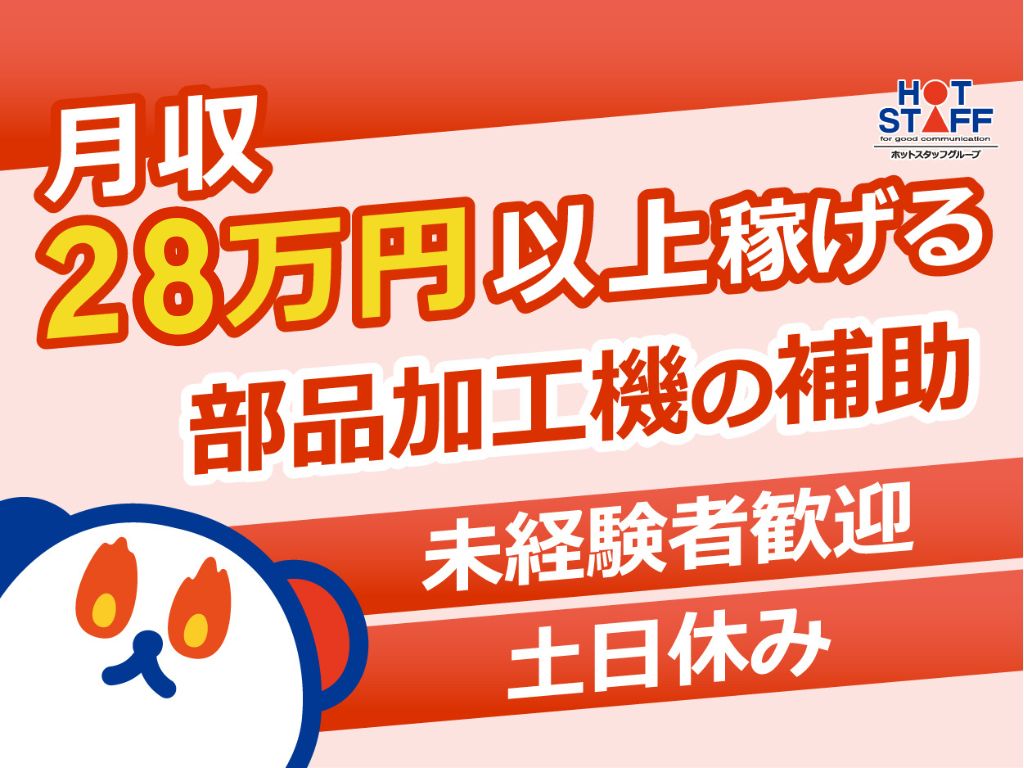 月収28万以上☆交替勤務!【小さい自動車部品の加工補助】土日休み♪未経験の方も歓迎!