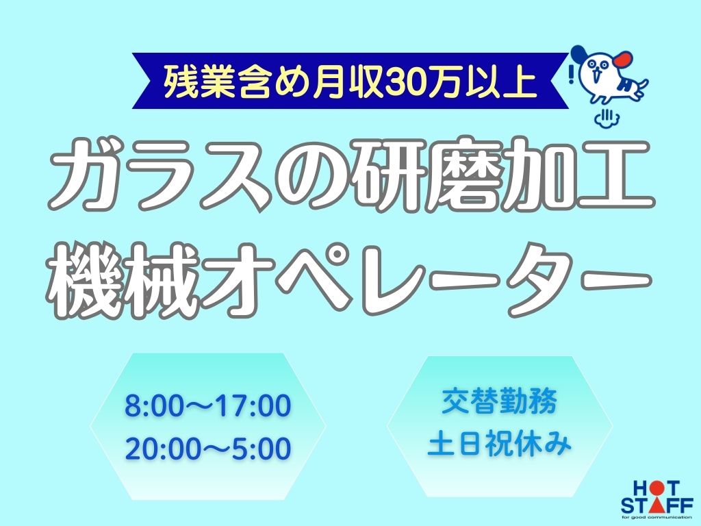 残業込みで月収30万以上☆交替勤務!【機械にセットしてボタンを押す!ガラスの研磨加工】土日祝休み♪