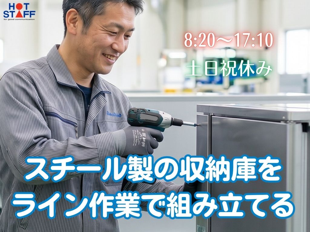 年間休日123日☆未経験歓迎♪8:20~17:10!【スチール製の収納庫をライン作業で組み立てる】