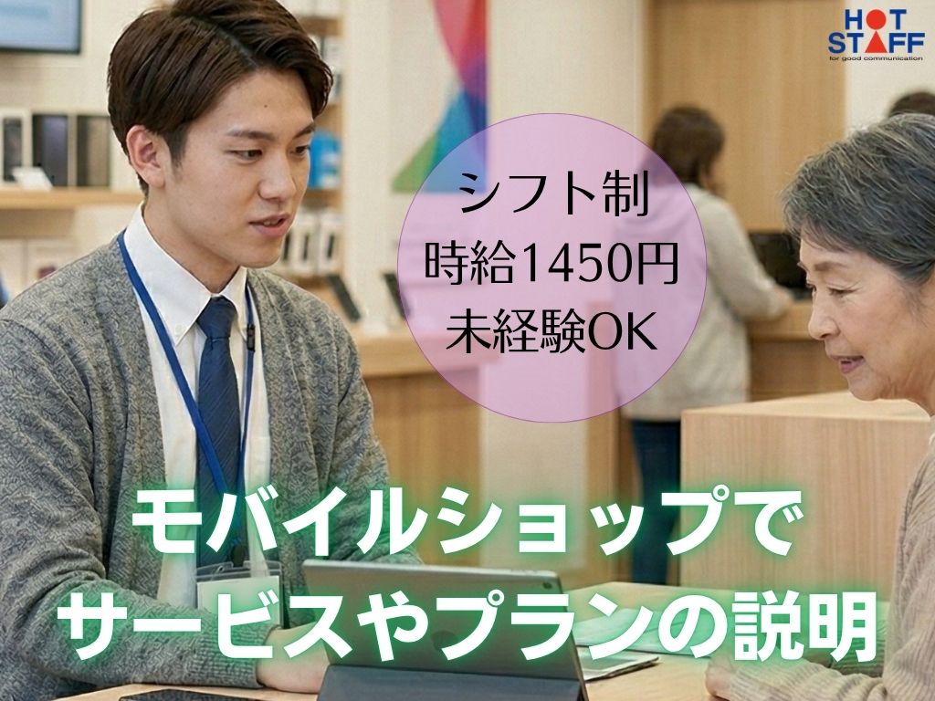 高時給☆1450円!シフト制&週休二日【携帯ショップでプラン提案やサービス説明】接客経験活かせます♪