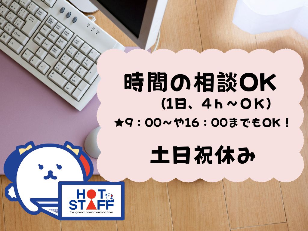 ☆実働4h~OK!9:00~もOK♪時間の相談もOK!受注処理や伝票入力などの一般事務☆うれしい土日祝休み♪