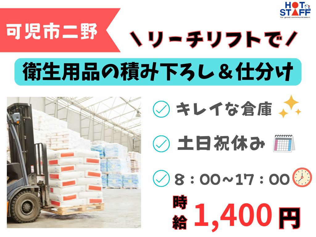 キレイな倉庫!空調完備★リフト作業5割ほど!衛生用品の運搬と仕分けスタッフ♪