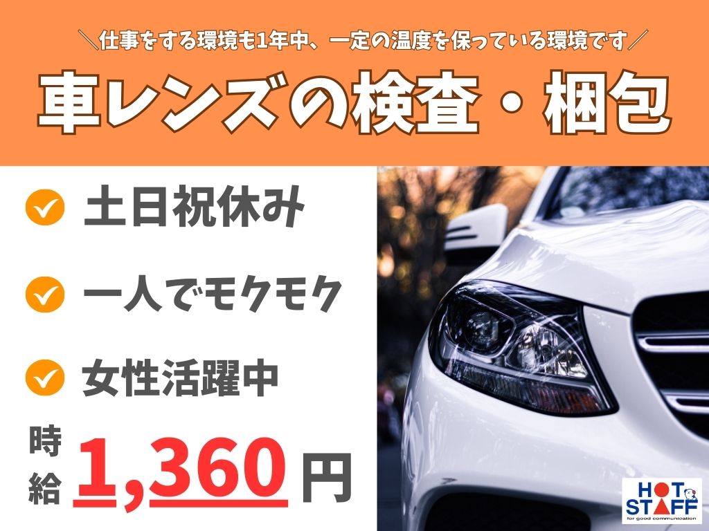 2交替で稼げる/高時給1360円★車レンズの目視チェックや梱包作業◎空調完備で1年中快適♪