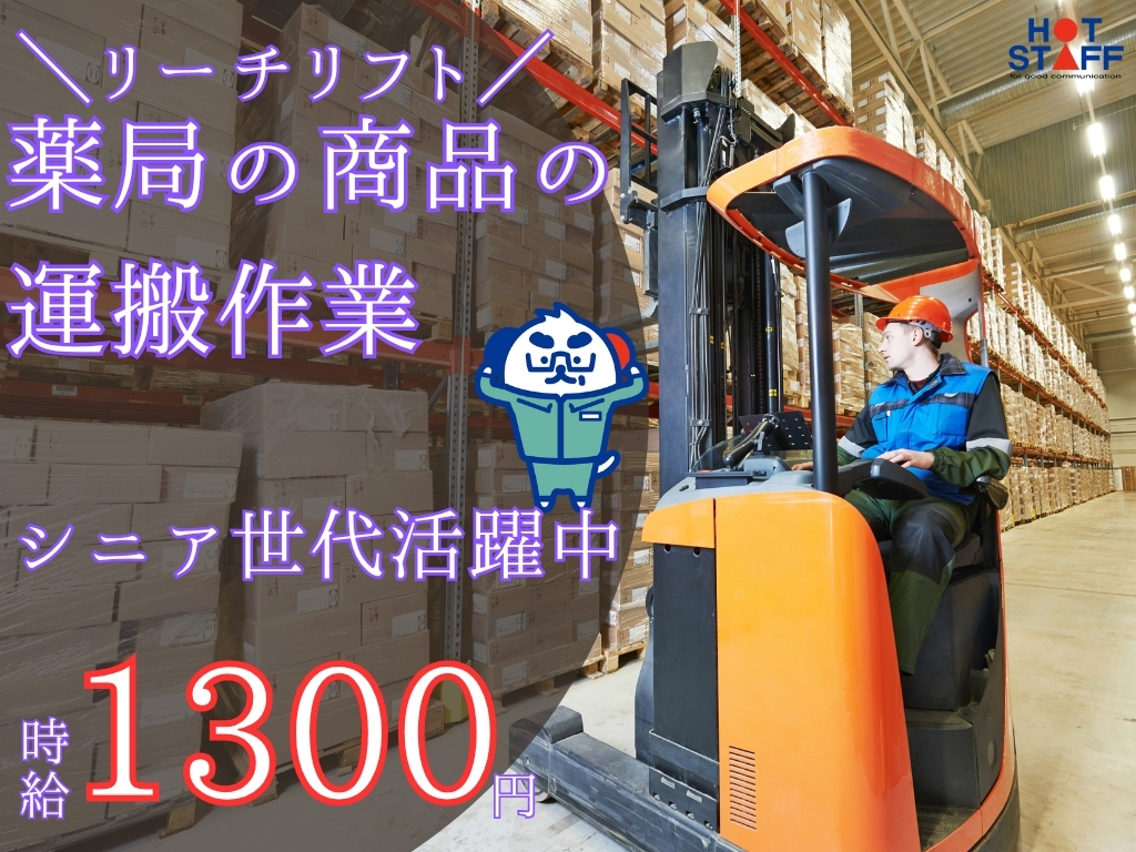 【リーチリフトの経験を活かそう】倉庫内で薬局の商品を運搬/日曜は固定休み/リフト作業9割♪