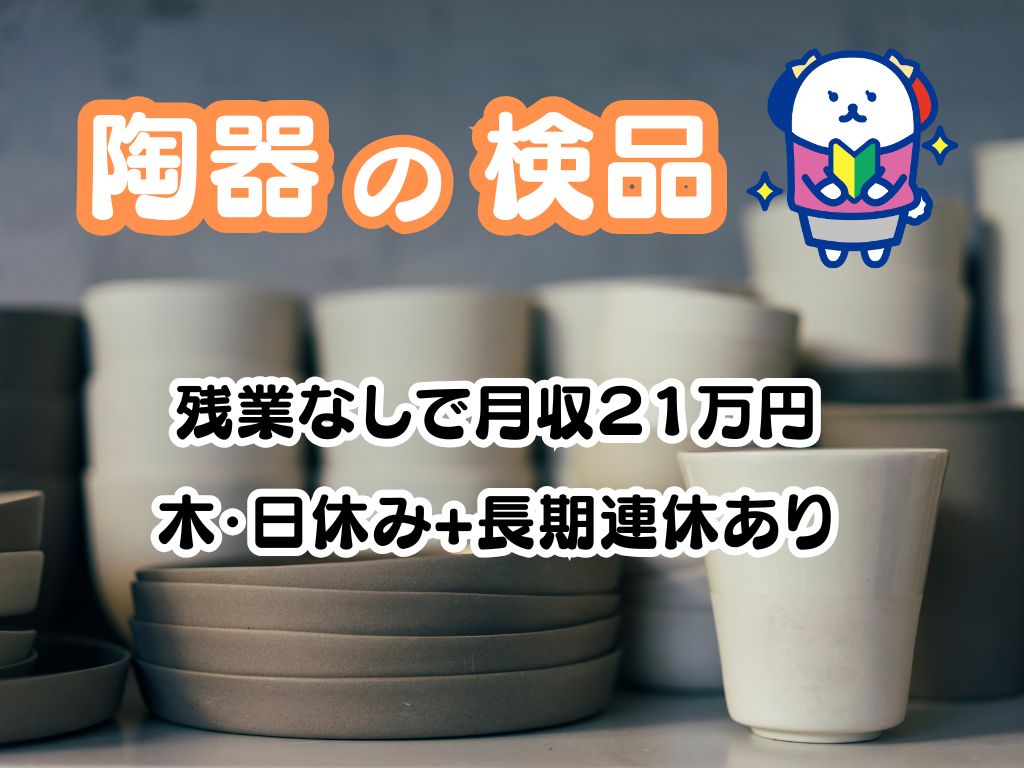☆残業なし♪月収21万円!お茶碗など陶磁器の検品・出荷準備!日勤のみ!木・日休み☆