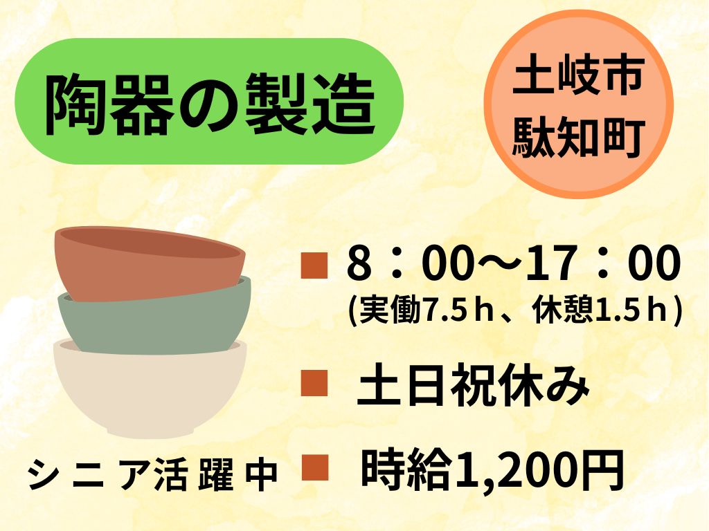 土日祝休み♪残業なし!《少人数の職場で陶器の製造!》粘土をカットしたり釉薬をチャポンっとつけたり♪