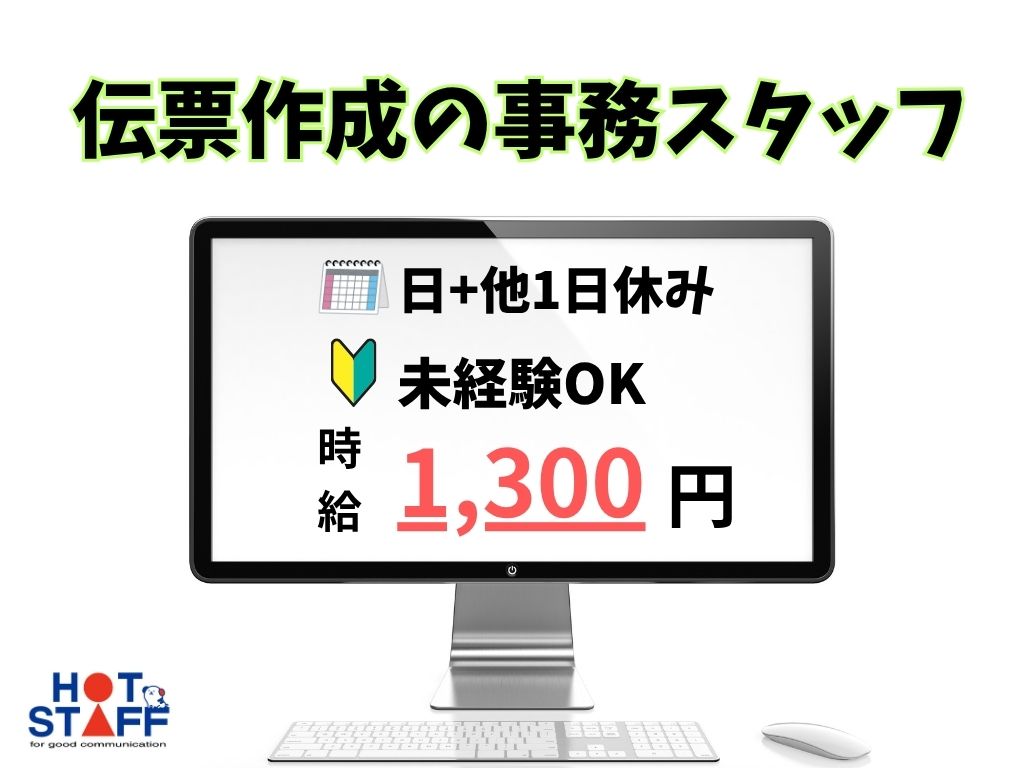 日+他1日休み / 残業なし/ 伝票の作成・PC入力する事務スタッフ★