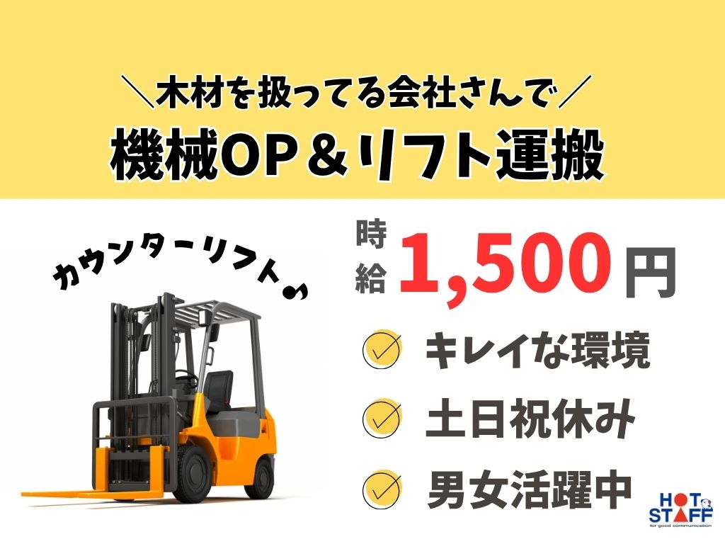 土日祝休み!キレイな工場♪木材を機械にセット&リフトで運搬スタッフ!