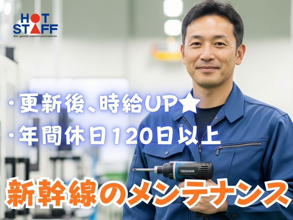 《経験やスキル必要なし・新幹線のメンテナンス》更新後、時給UP/年間休日120日以上あり/残業ナシ