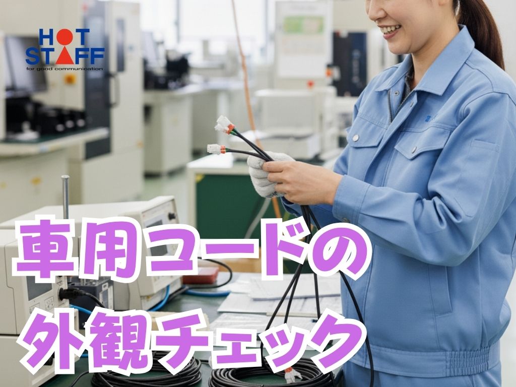 《空調完備の工場・車用コードの外観チェック》未経験OKの軽作業/プライベートを充実できる♪
