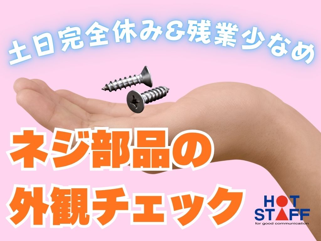 《機械にセットするだけ♪・ネジ部品の外観チェック》軽作業で安心/土日完全休み/残業少なめ