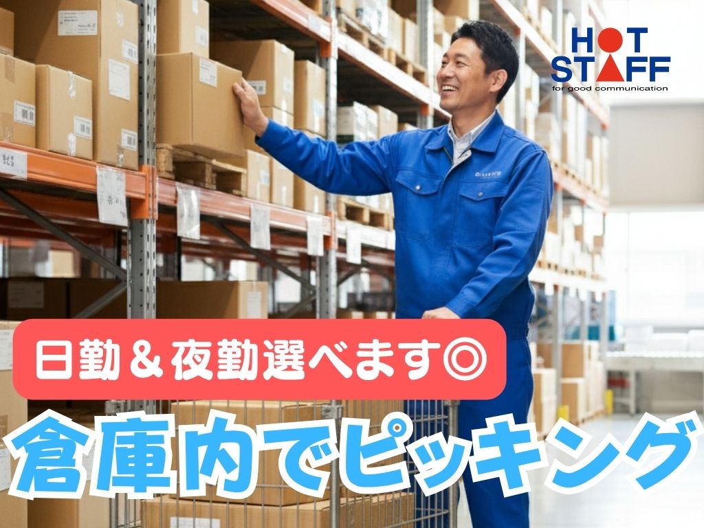 《キレイな倉庫内で部品を集めて運ぶだけ♪》日勤or夜勤が選べる/未経験OK/人気のピッキング作業
