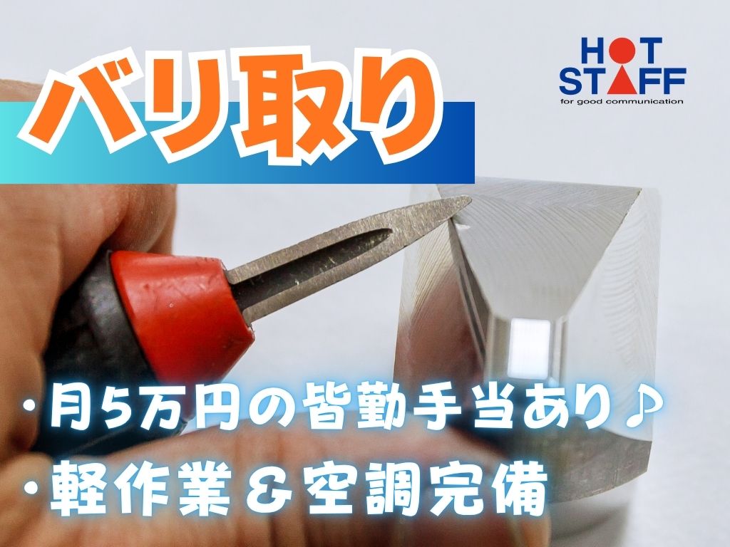 《月5万円の皆勤手当あり♪・部品についたバリを取るだけ》未経験でもできる軽作業/空調完備の職場