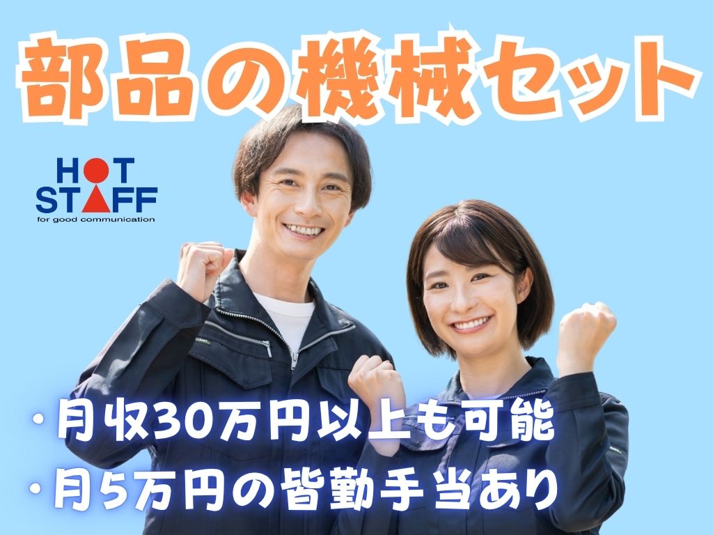《月収30万円以上も可能・30cmくらいの部品を機械セット》皆勤手当あり/軽作業/快適な職場環境♪