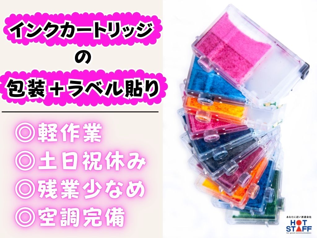 《手のひらサイズのインクのシール貼り&包装♪》土日祝休み/残業月5H/数百gの軽作業◎