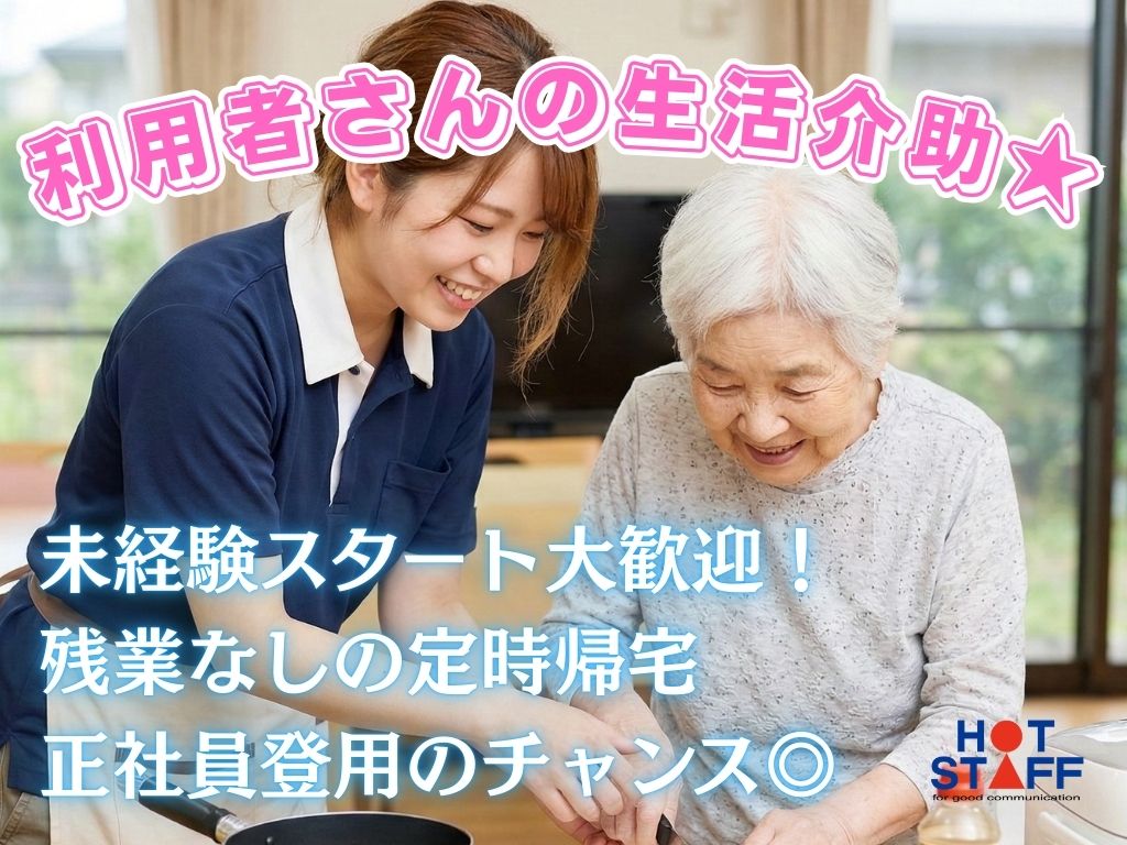 《利用者さんの生活介助★》資格や経験不要/週休2日制/残業なしの定時帰宅/正社員登用のチャンス◎