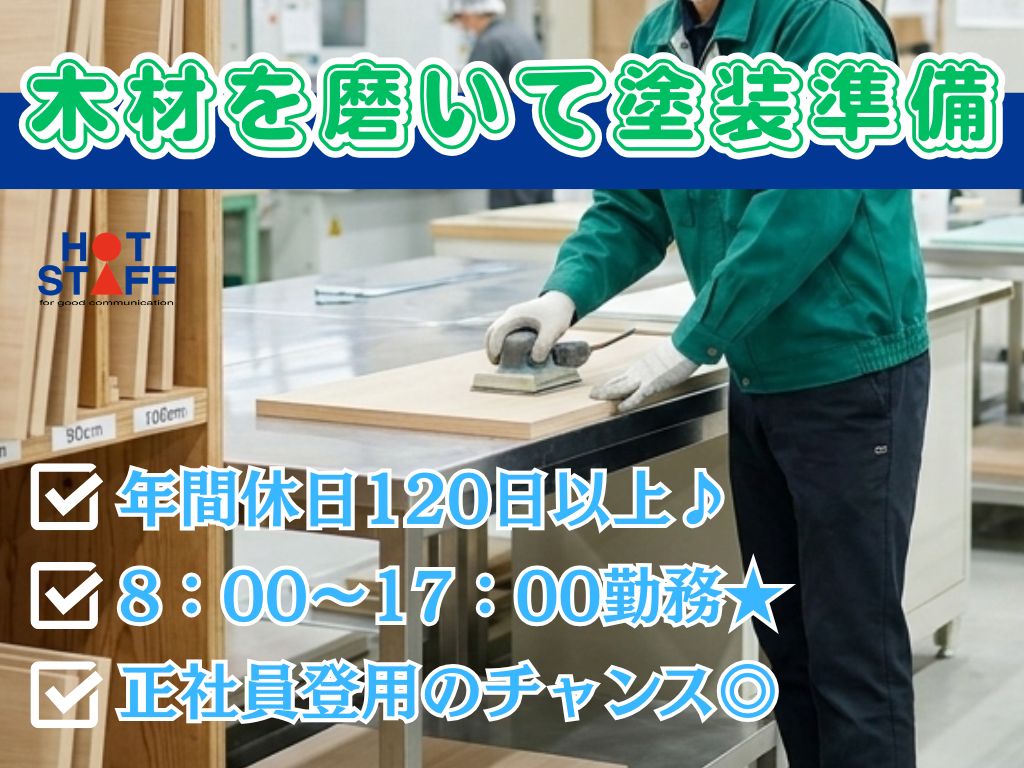 《木材を磨いて塗装準備★》年間休日120日以上/日勤8:00~17:00/正社員登用のチャンスあり◎