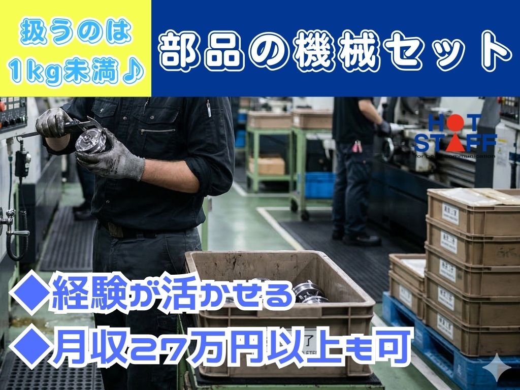 《1kg未満の部品を機械セット♪》機械OP経験が活かせる/土日休み/月収27万円以上も可/2交替★
