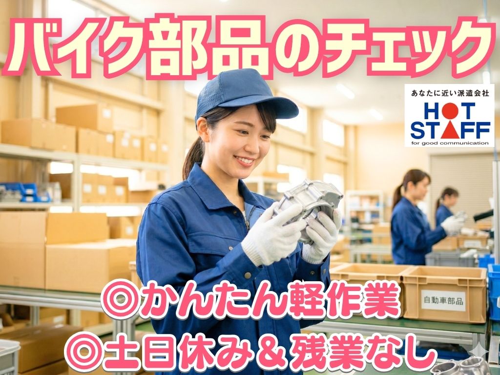 《かんたん軽作業♪バイク部品の傷チェック》未経験OK/土日休み/残業なし/8:00~17:00