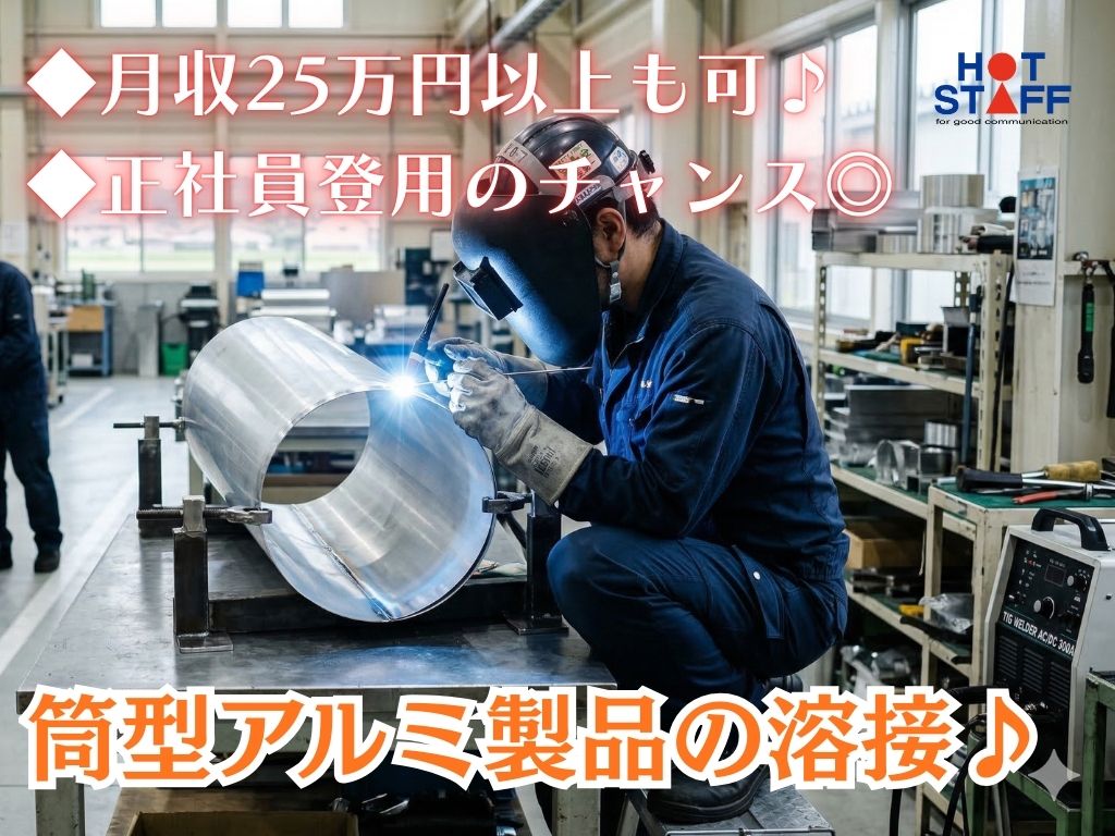 《筒型アルミ製品の溶接加工♪》経験が活かせる/月収25万円以上も可/正社員登用のチャンスあり★