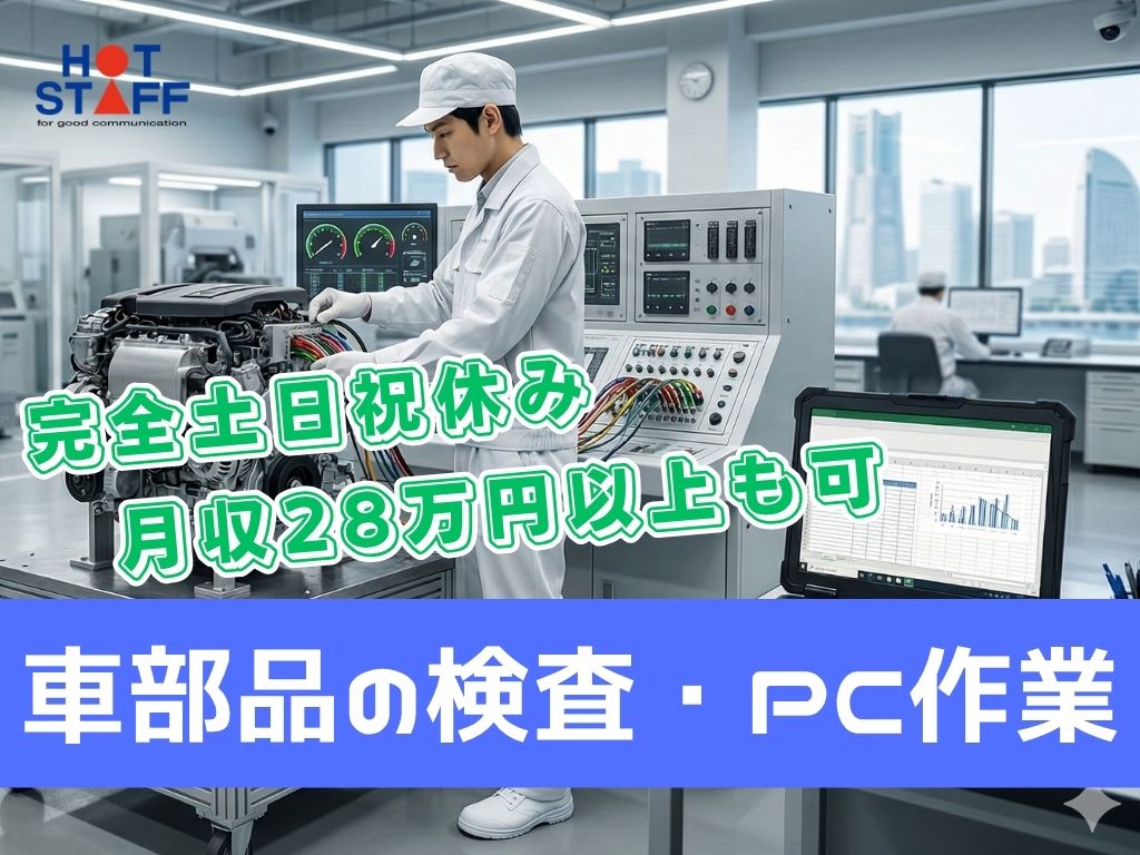 《サンプル車部品の検査・PC作業》高時給1700円!/日勤専属+残業なし//年間休日120日以上★