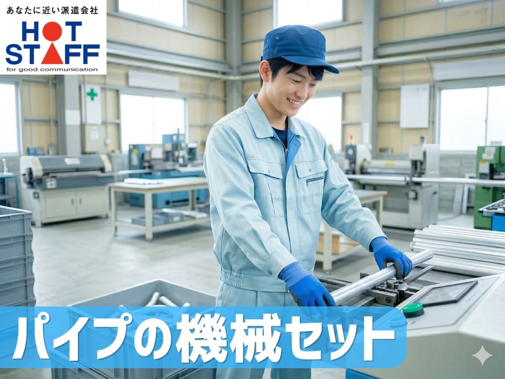 《単純作業で覚えやすい♪パイプを機械にセット》月収25万円以上も可/8:00~17:10