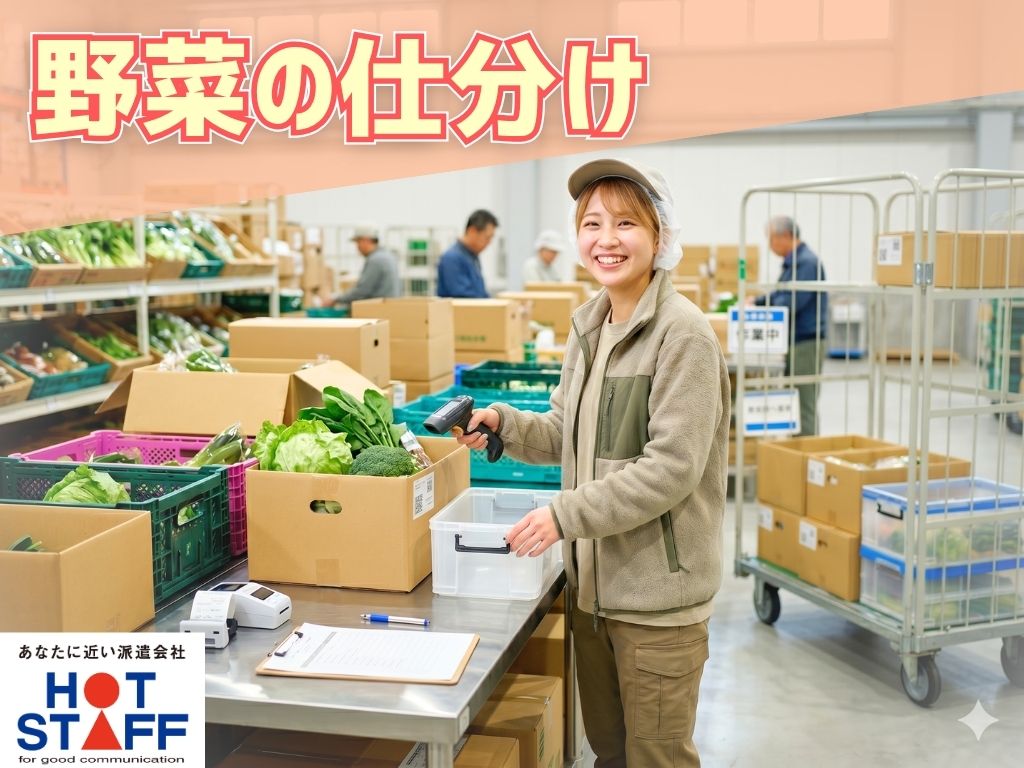 《未経験OK◎野菜を出荷先ごとに仕分け》時間が選べる/シフト制・曜日固定や日曜休みもOK/食堂あり