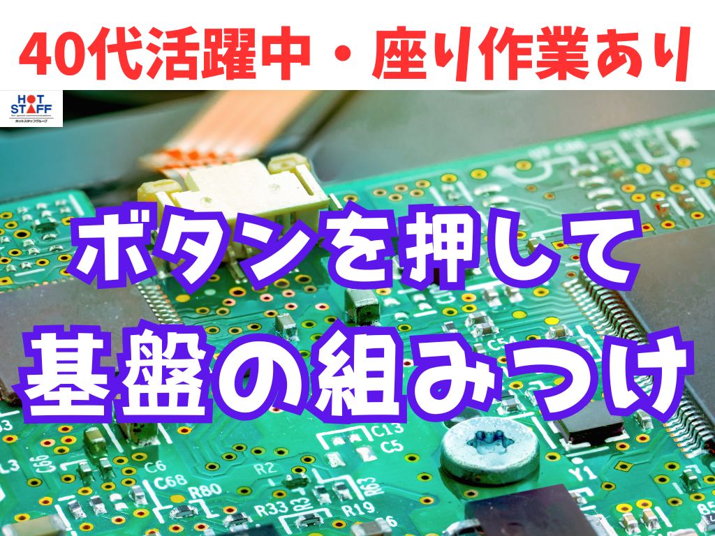座り作業あり・40代活躍中・土日祝やすみ・残業なし・ボタンを押して基盤の組みつけ