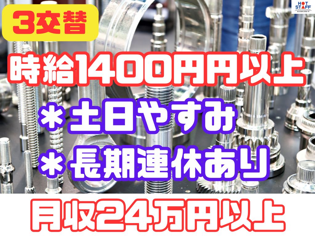 土日休みの3交替・高時給1400円・台車で金属部品を機械に入れるだけ