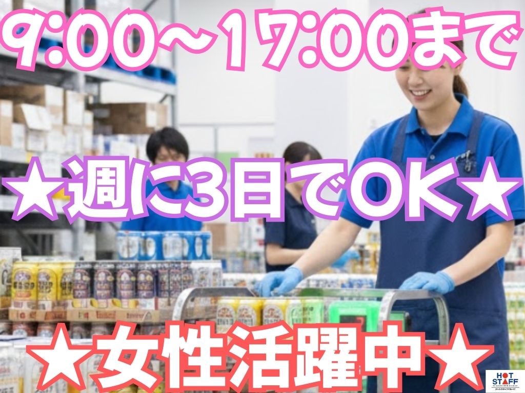 【9:00~17:00・週3OK】お小遣い稼ぎおススメ・ネイルOK・髪色自由・日曜+平日に休める・缶ビールのピッキング