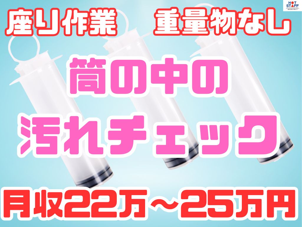 座り作業で重量物なし・年間休日129日・時間が選べます!!プラスチック製の筒に入った水の汚れチェック