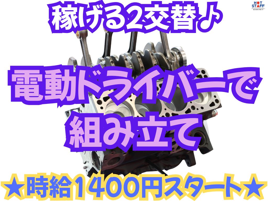 【稼げる2交替・時給1400円】大手企業で安定してがっつり稼げる・長期連休もあり・年間120日・電動ドライバーで組み立て