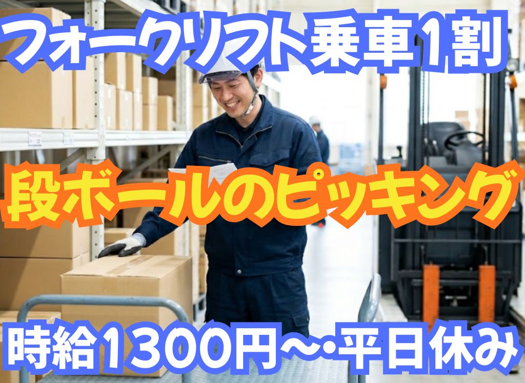 時給1300円・残業が出来て稼げる・フォークリフトの乗車1割・コンビニ商品の荷下ろしとピッキング