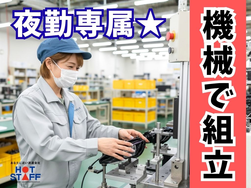 《手のひらサイズの車部品をセット→機械で組み立て◎》20時~の夜勤専属/未経験OK/完全土日休み