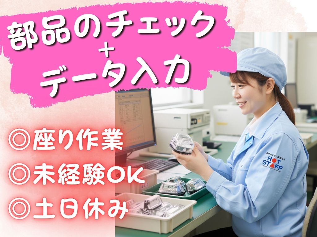 《手のひらサイズの軽い部品をチェックしてPCに入力するだけ!》座り作業◎/土日休み&残業なし♪