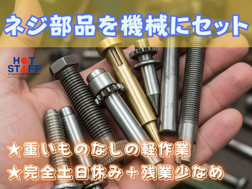 《小さいネジ部品を機械にセット》未経験OK/重いものなしの軽作業/完全土日休み/残業少なめ♪