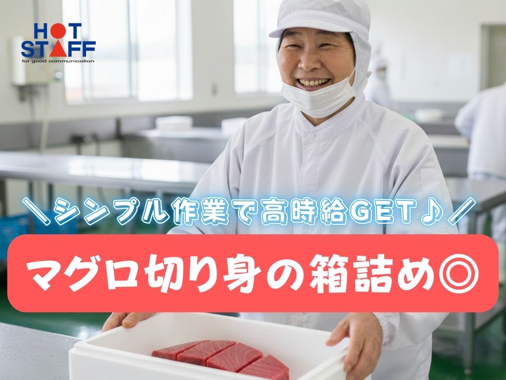 《シンプル作業で高時給◎・マグロの切り身を箱に入れるだけ♪》未経験歓迎/土日祝休み+残業なし★