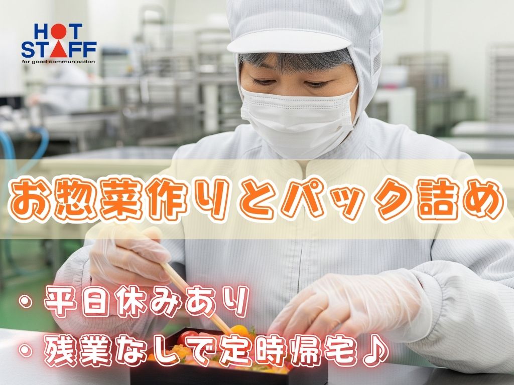 《お惣菜作りとパック詰め◎》経験を活かせる/週休2日制・平日休みあり/残業なしで16時に定時帰宅♪