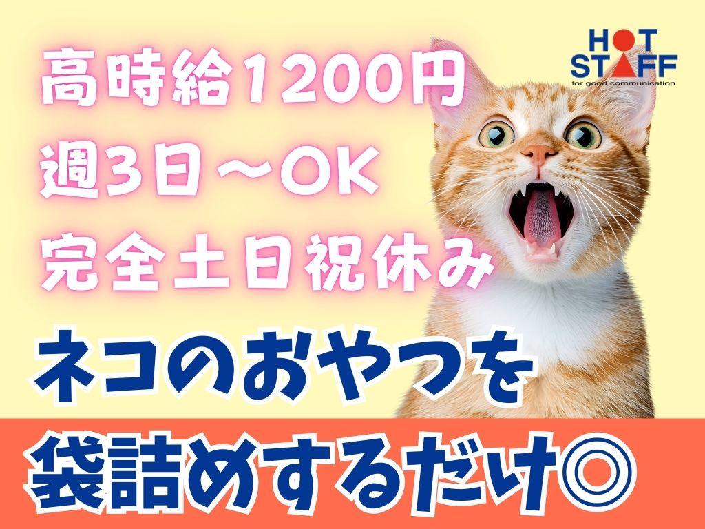 《ネコのご褒美おやつを袋詰め◎》軽作業のオシゴト/週休3日・週休4日OK/完全土日祝休み+残業なし