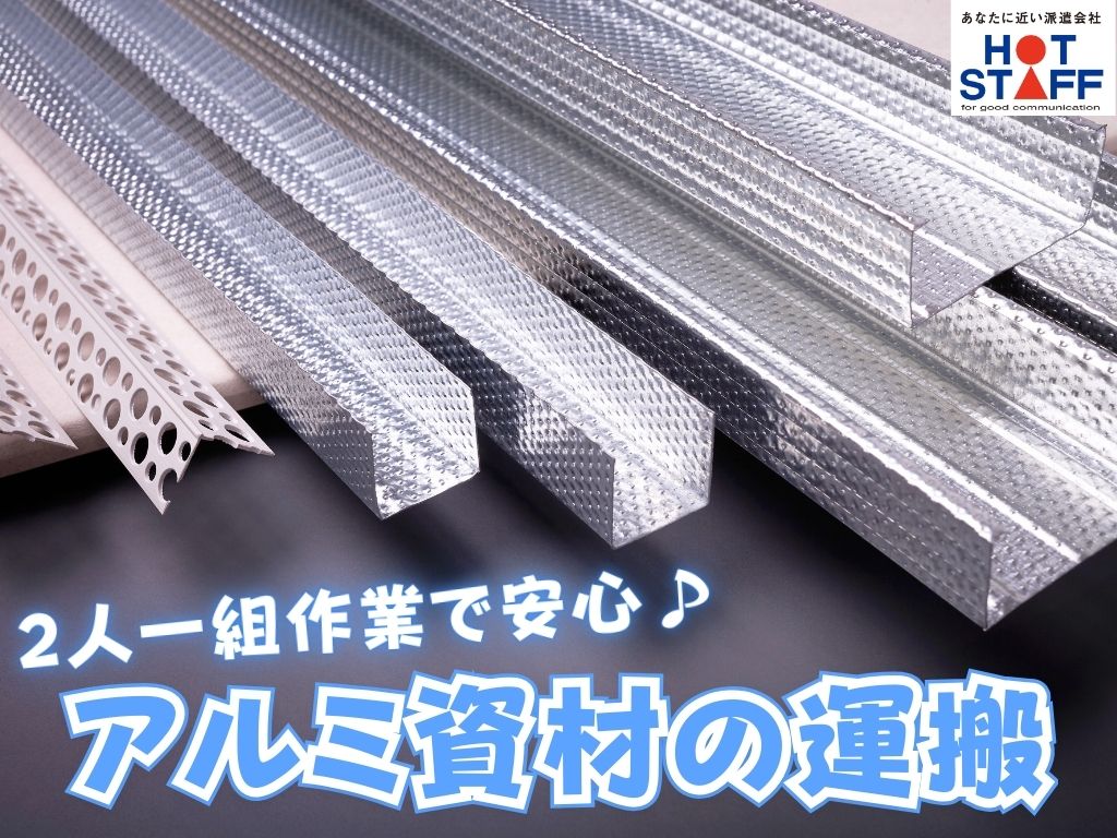 《2人一組でアルミ資材を運ぶ◎》未経験OK/年間休日120日以上あり/8:00~17:00